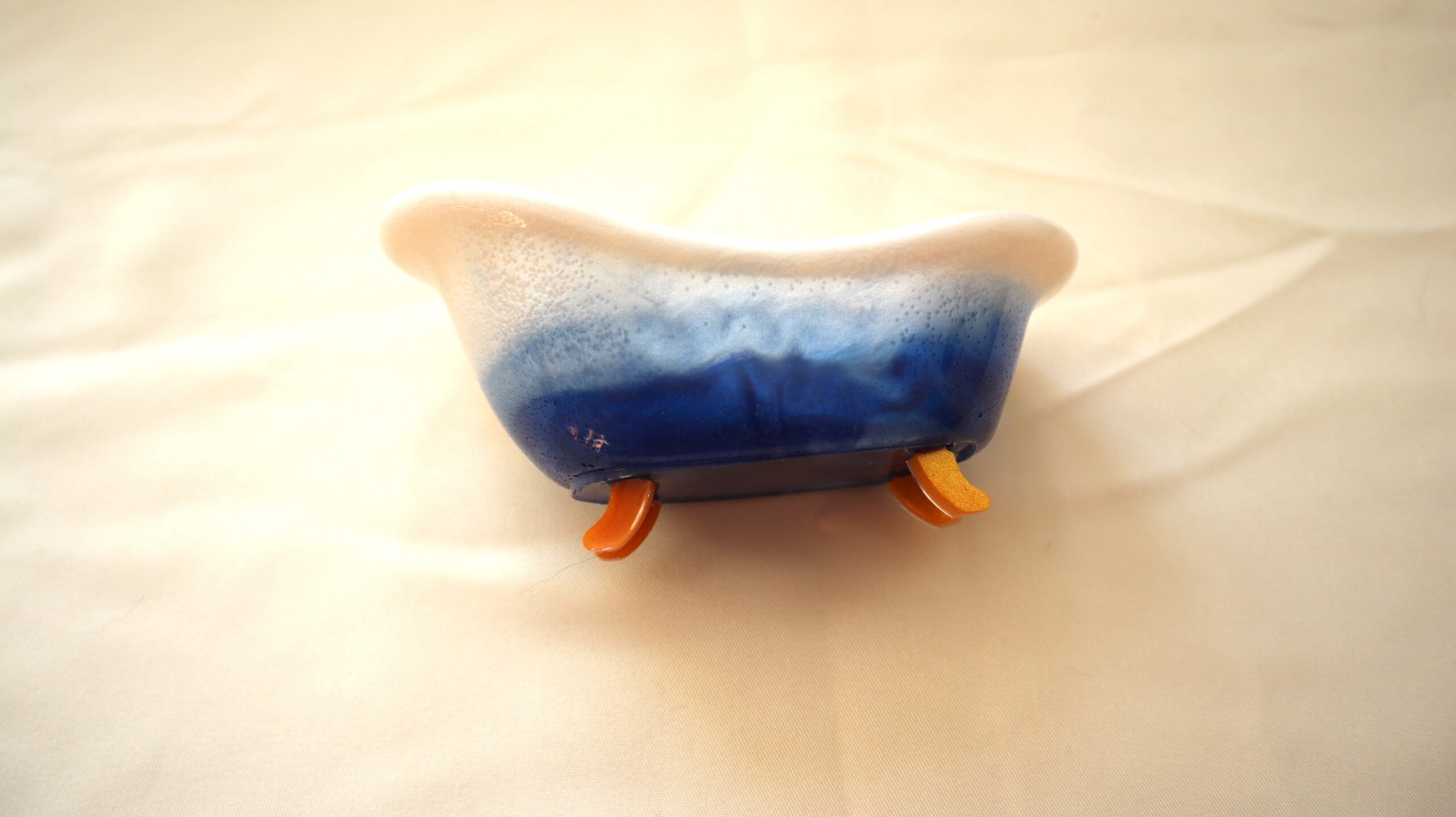 Inspired by the classic shape of a bathtub, this mini decorative piece is handmade from resin and finished in a delicate white and blue gradient. Perfect for storing keys, coins or small everyday items, it brings a touch of color and personality to any space.