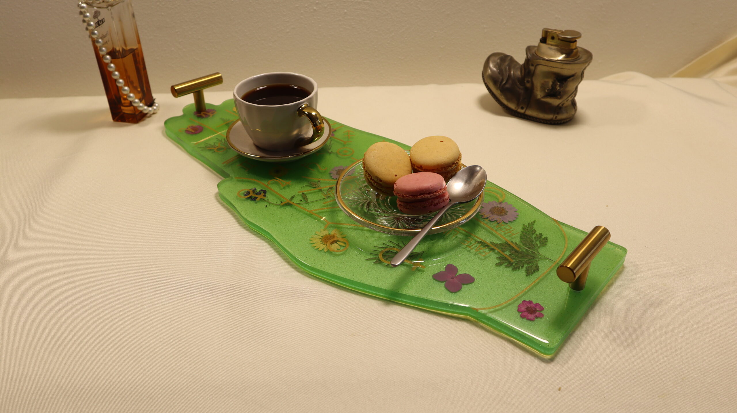 Botanical Epoxy Resin Serving Tray – Handmade Decorative Coffee Table Tray