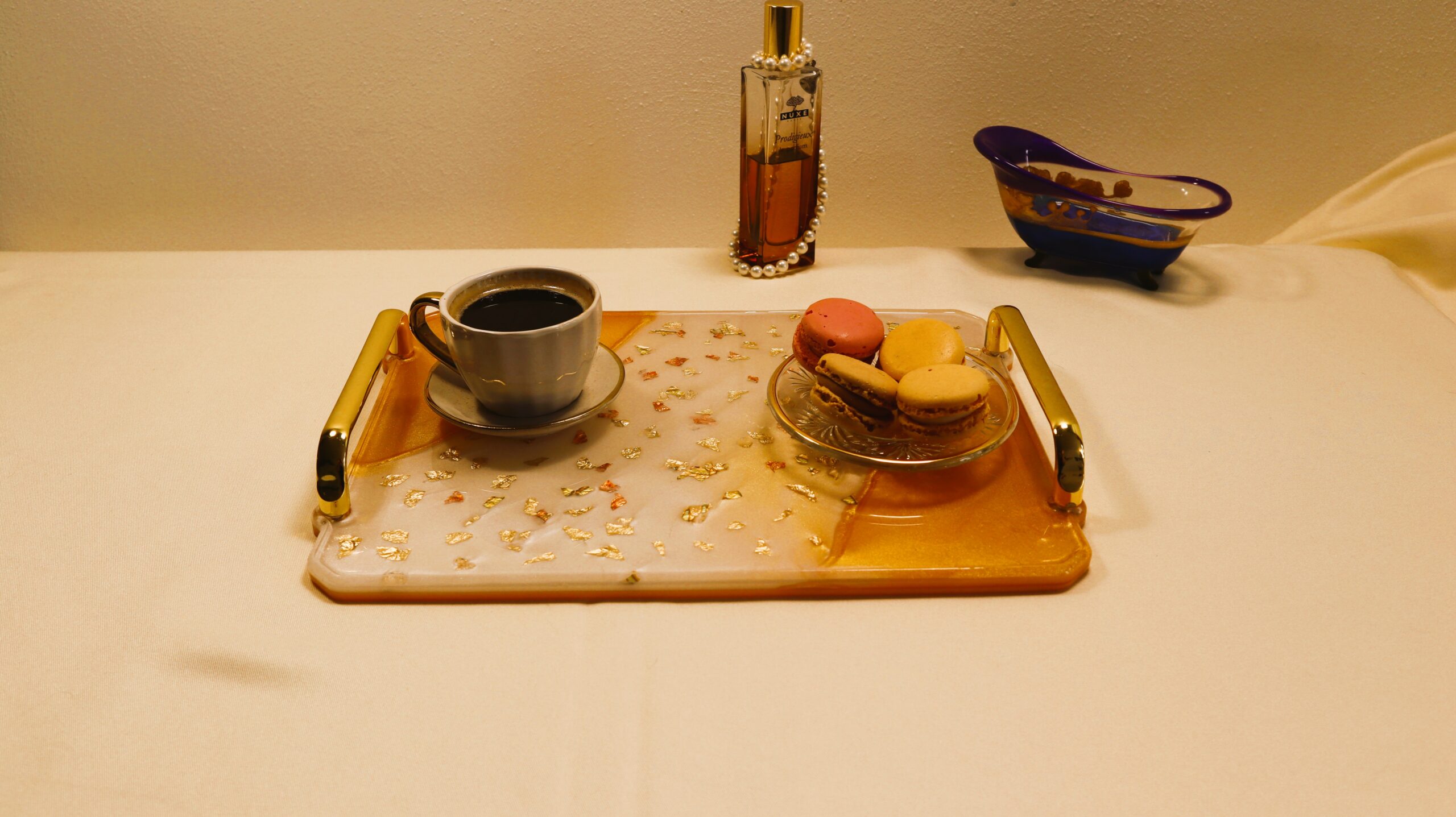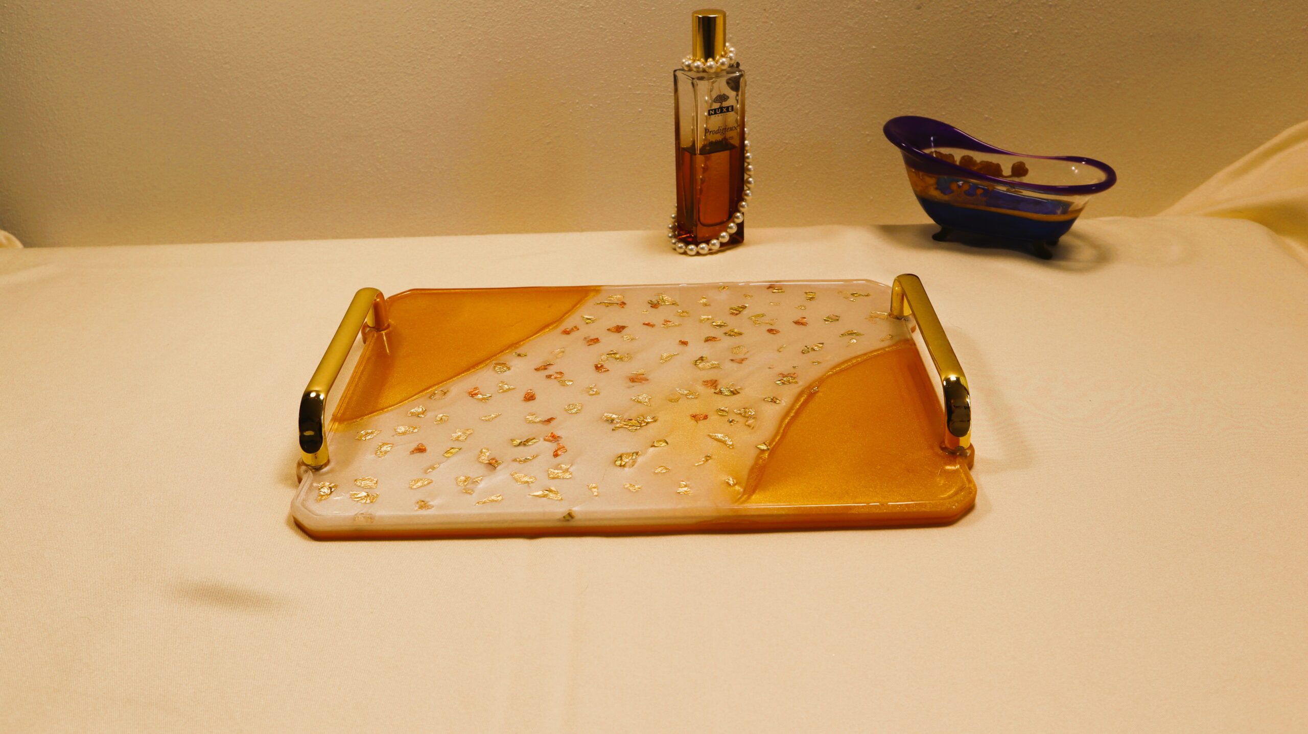 Honey Gold Epoxy Resin Serving Tray – Handmade Decorative Coffee Table Tray